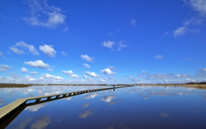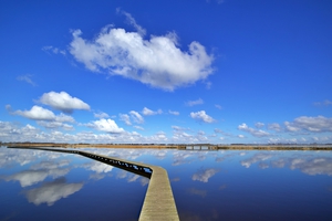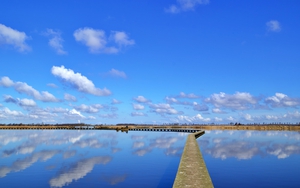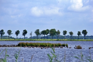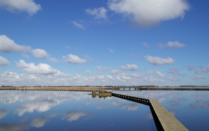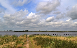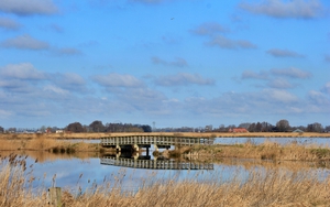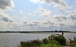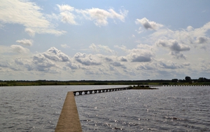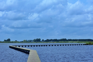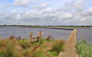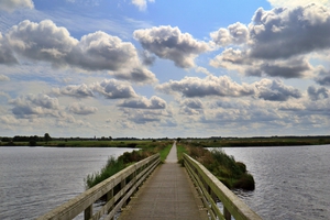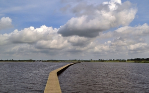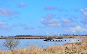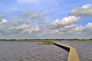 Ingang knuppelpad. Het Knuppelpad is een houten vlonderpad van 750 meter dwars door het moeras van ‘t Roegwold. De totale lengte van het rondje (vanaf parkeerplaats): ca 2 km. Zo'n 6.000 jaar geleden was hier nog bos, nu vind je hier een moeras, dat zich razendsnel ontwikkelt. De boomstronken steken hier en daar boven het water uit.